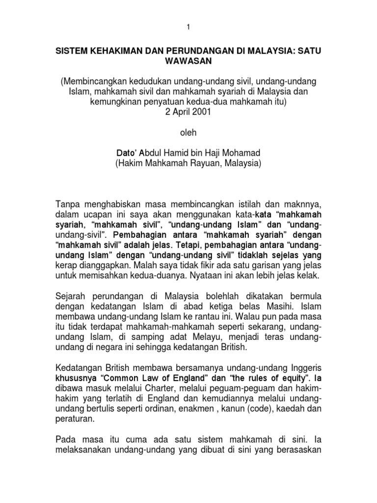Sistem Kehakiman Dan Perundangan Di Malaysia Satu Wawasan Pdf